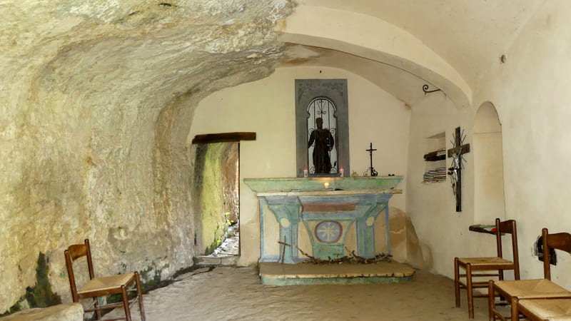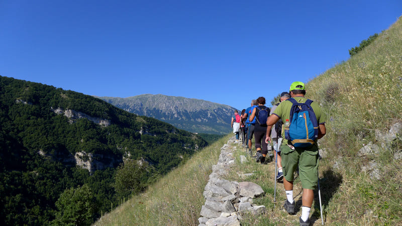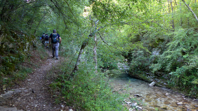 Desde el Centro de Visitantes del Parque de Maiella, desciende hasta el fondo del Valle dell’Orfento y sube por el curso de agua para tomar el camino que lleva a la aldea de Decontra. Desde aquí, nos dirigimos a la meseta del Valle Giumentina, la cruzamos y, tras el Ecomuseo Paleolítico, descendemos por el valle hasta llegar a la encantadora iglesia rupestre de San Bartolomeo de Legio. Luego continuamos por una carretera fácil hasta el pueblo de Roccamorice.